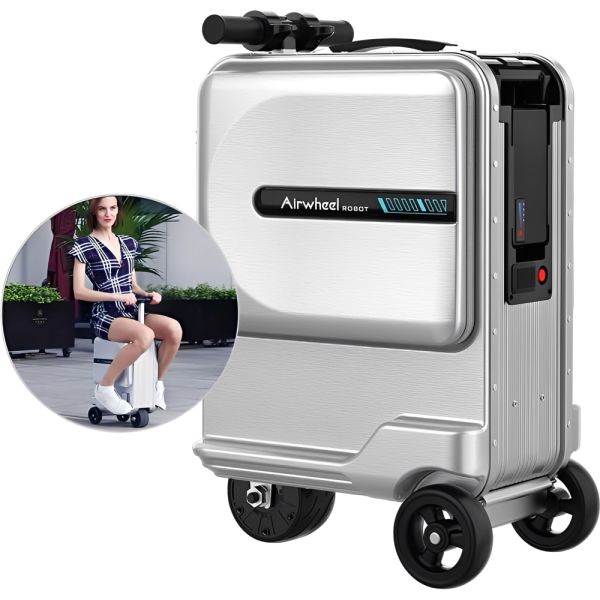 El Airwheel SE3MINIT es un bolso de mano inteligente de 20 pulgadas diseñado para ofrecer movilidad y comodidad al viajar. Su estructura de aleación de aluminio de calidad aeronáutica, combinada con ABS y PC de alta resistencia, garantiza durabilidad, resistencia al agua y resistencia al desgaste. Equipado con motor eléctrico y ruedas antideslizantes, alcanza velocidades de hasta 8 km/h, soportando una carga máxima de 110 kg. Dispone de una batería de litio extraíble de 73,26 Wh, apta para vuelos y con una autonomía de hasta 9,2 km, que también funciona como banco de energía con sus puertos USB duales. Incorpora una cerradura TSA para mayor seguridad y un diseño ergonómico en "Z" que facilita la conducción. Su barra telescópica y manillar de goma proporcionan un agarre cómodo, mientras que su capacidad interna de 26 L permite un almacenamiento eficiente. Compatible con la aplicación Airwheel, ofrece control remoto y alarma de desconexión Bluetooth. Con un diseño galardonado y funciones inteligentes, es el compañero ideal para los viajeros modernos.